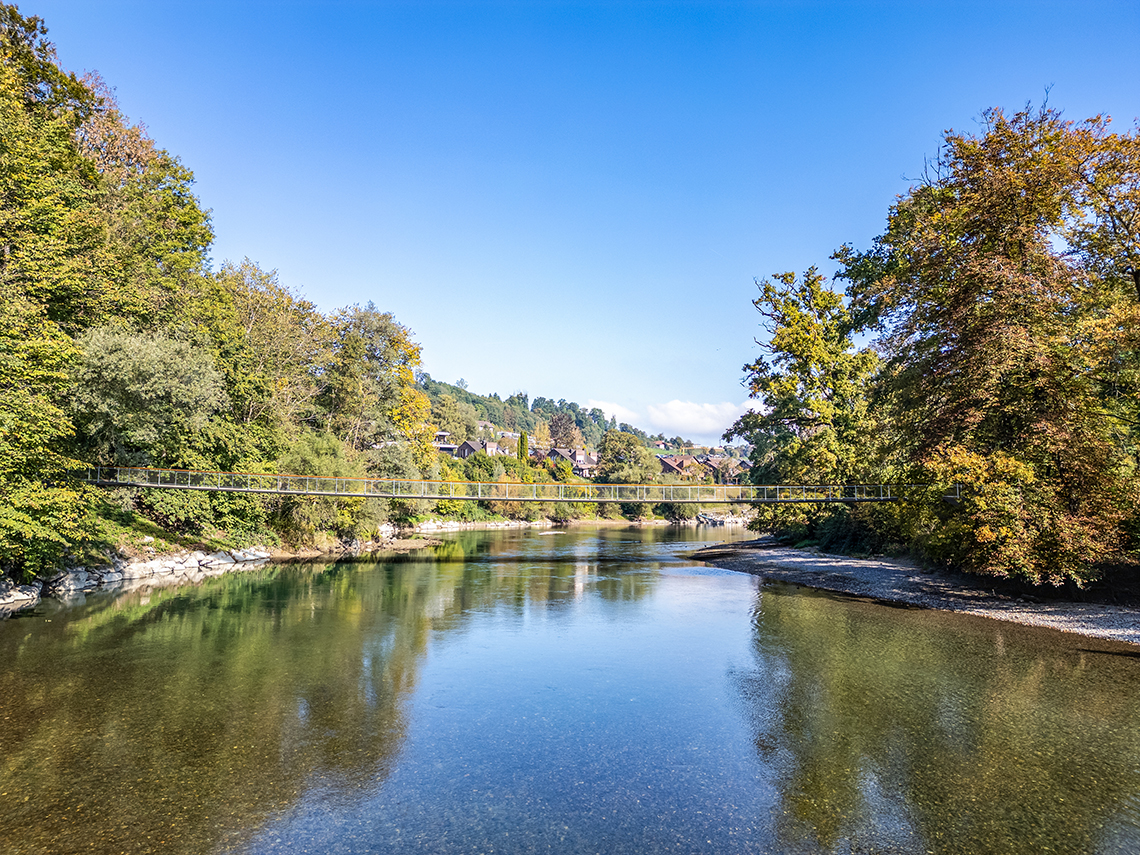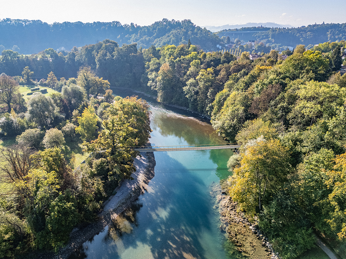 «Auf zum Zehndi!» ist das Ausflugsmotto vieler Naturfreund:innen der Stadt Bern und Umgebung. Das Zehendermätteli, idyllisch auf der Enghalbinsel in der Aareschlaufe gelegen, ist ein beliebtes Ausflugsziel mit Restaurant. Um eine ganzjährige Erschliessung zu dem Erholungsraum sicherzustellen, soll ein Aaresteg als Ersatz für den bestehenden Fährbetrieb realisiert werden.