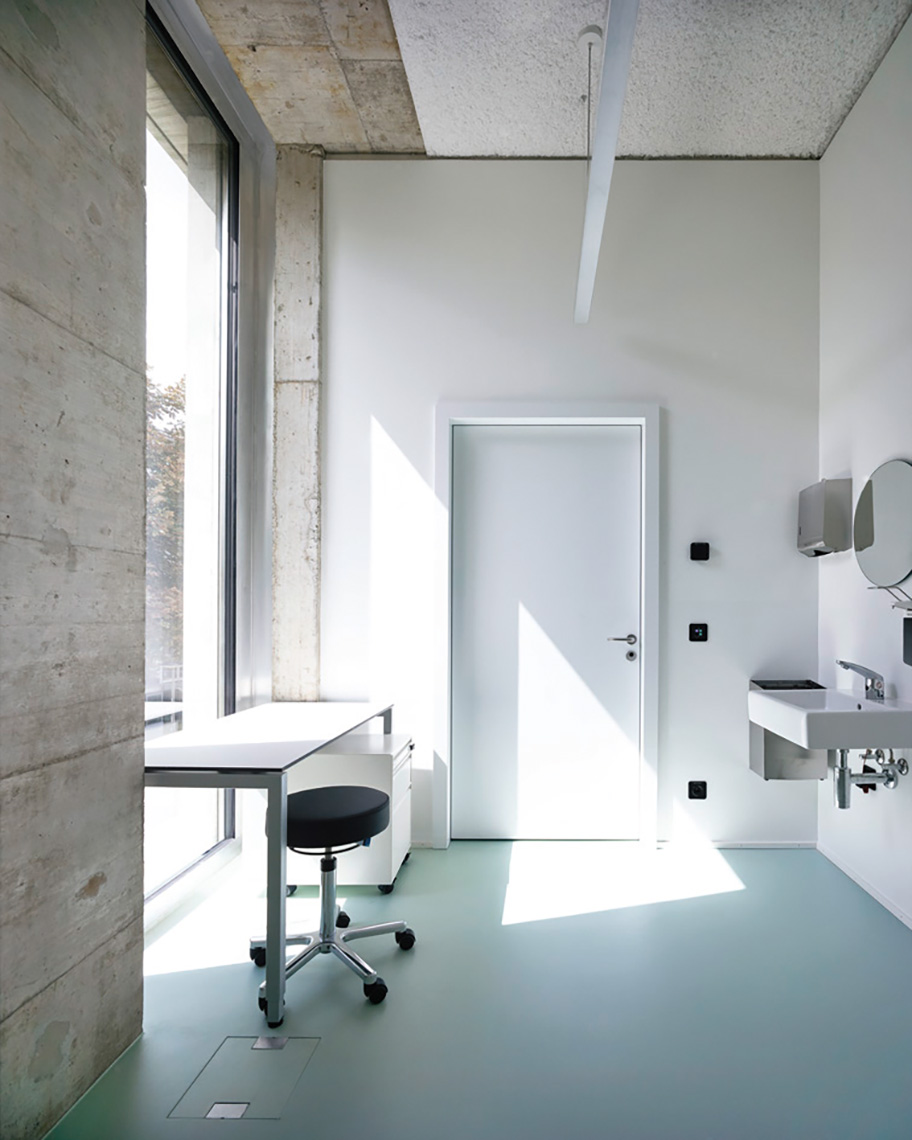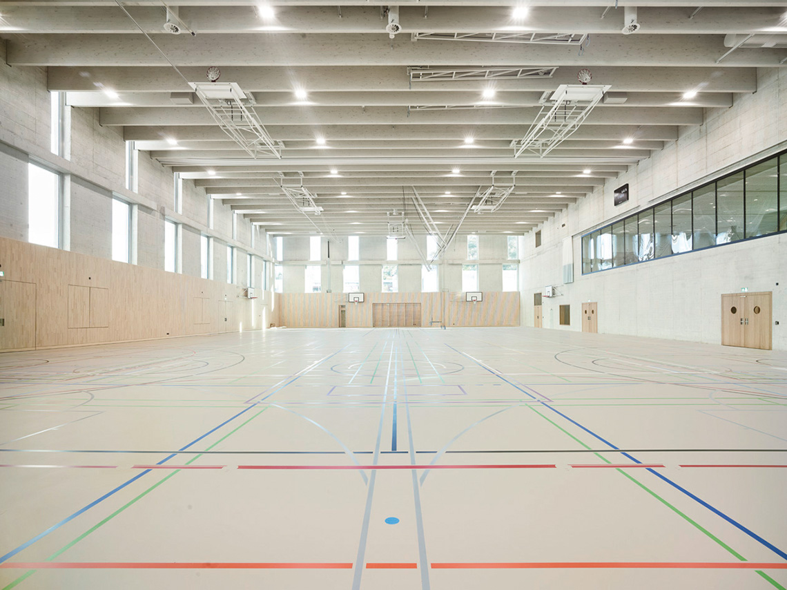 Der neue Gebäudekomplex des Departements für Sport, Bewegung und Gesundheit der Universität Basel beinhaltet neben Sportinfrastrukturen wie Dreifachsporthalle, Cardio-Kraft- und Gymnastikräumen auch Hörsäle, Seminarräume, Büros und Labore. Im südlichen Teil des Gebäudes ist ein zentraler Innenhof angelegt, dessen üppiger Garten als Aufenthalts- und Erholungsort dient. Die diversen Nutzungen zeigen sich nach aussen als eine Einheit, ausgedrückt durch die umlaufende Fassade über alle Geschosse. Durch verschieden grosse Fensteröffnungen erhalten die Räume das notwendige Tageslicht, oder den notwendigen Schutz vor Sonneneinstrahlung. Der Fensterrhythmus und die unterschiedlich grossen Fenster verleihen dem Baukörper seine dynamische Wirkung.