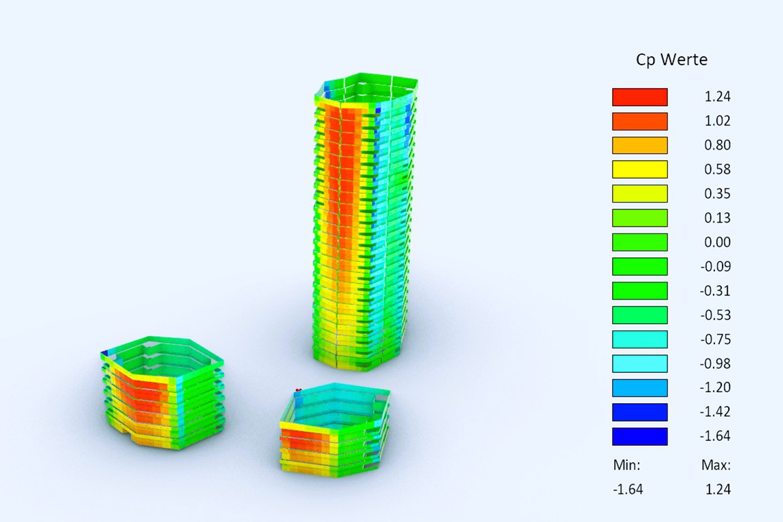 Bei besonderen Gebäudeformen, hohen Bauwerken oder komplexer Umgebungsbebauung liefert das Windgutachten zudem präzise Berechnungen der auftretenden Winddrücke. Dadurch können Konstruktionen gezielt ausgelegt und Sicherheitsreserven optimal genutzt werden.