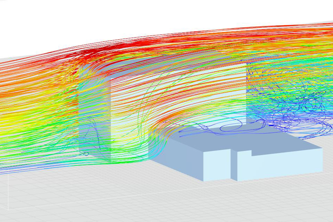 Durch die Analyse der Windströmungen können Storen optimal angesteuert und die geeigneten Produkte ausgewählt werden. So wird gewährleistet, dass Beschattungssysteme auch bei hohen Windbelastungen zuverlässig funktionieren und Schäden vermieden werden. Gleichzeitig ermöglicht das Gutachten eine genaue Einstufung des Windkomforts im Umfeld des Gebäudes – ein wichtiger Aspekt für die Gestaltung von Aufenthaltsbereichen, Terrassen oder Passagen.